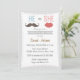 Gênero Revelar convite de Chá de fraldas com bigode e beijar design e antecedentes de polkadots.