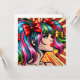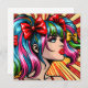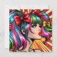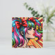 Garota adorável do estilo quadrinho de pop-arte com rabos e arcos em seu cabelo.
