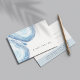 O certificado de presente de cliente chic exibe uma linha de solteiro de texto personalizado (mostrado com "um presente para você") em um fundo branco nítido, acentuado com ilustrações de fatia de agata de geode de aquarelas em blues etéreos do oceano. Adicione o texto desejado do certificado-presente e as informações de contato comercial no verso. Uma escolha moderna e elegante para spas, boutiques, salões, maquiadores, cabeleireiros ou qualquer negócio.