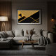 Um trabalho de arte de abstrato que combina formas geométricas e tons de terra para transmitir equilíbrio e sofisticação. O contraste entre preto, marrom e ouro cria um design moderno, elegante e eterno. Perfeito para interiores contemporâneos que buscam estilo e personalidade.