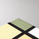 Inspired by Bauhaus design, it features a soothing blend of sage green, soft terracotta, and warm cream, enhanced by crisp black lines and clean white shapes.