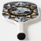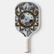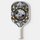 This geometric pickleball-inspired design features a centered hexagonal core built from interlocking metallic facets, accented with gold fills, silver edges, and subtle prismatic reflections. Layers of triangles and hexagons radiate outward in a clean, symmetrical formation, creating a sleek abstract cluster ideal for modern apparel. A soft chromatic aura and a restrained chrome grid enhance depth while maintaining a minimalist, contemporary aesthetic. Designed in crisp, scalable digital art with sharp lines and smooth gradients, this contained geometric composition prints beautifully on T-shirts and other merchandise.