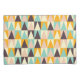 Geometric pattern of multi-colored triangles in teal, orange, cream, brown, and peach, arranged in a repetitive grid, conveying a modern, vibrant feel.