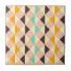 Geometric pattern with overlapping diamonds and triangles in orange, teal, cream, brown, and pink. The design is symmetrical, creating a vibrant, playful feel.