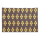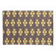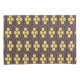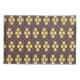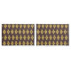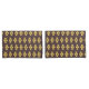 Repeating geometric pattern with orange and blue hexagons forming floral shapes on a dark background. The design conveys a retro, symmetrical feel.