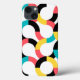 Padrão abstrato feito com formas geométricas circulares coloridas. São usados cores vermelho, azul, amarelo e preto. Fundo vetorial lúdico, divertido e moderno para a design gráfica.
