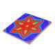 Um atraente padrão geométrico predominantemente em tons de vermelho e azul, mas também com amarelo, ciano, roxo e verde.