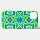 Capa de telefone em padrão geométrico de abstrato de estrelas Em tons de verde limão, azul-cerulano e turquesa, acentuados com azul profundo