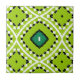 Design de azulejo de de cerâmica vibrante moderna com um padrão mosaico composto de formas geométricas em verde limão, verde escuro, preto e branco.