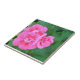 Um gerânio cor-de-rosa e verde no azulejo bonito. Acentue seu trabalho do azulejo. Ou criar uma caixa de presente ou um trivet.