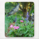 Gerânio cor-de-rosa e roxos e plantas indicados em uma qualidade Mousepad.