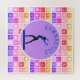 Natal da ginástica O tema Quebra-cabeça - o fundo apresenta árvores de Natal, presentes e muito mais. No centro há uma ginasta no feixe, diz a ginástica.