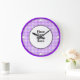 Quadro roxo Gingham Frame redondo quadro atrás das marcas de hora, Coloque sua foto aqui relógio personalizado de parede, sua foto aparecerá atrás do quadro redondo para um olhar verdadeiramente profissional - pontos de ouro branco para marcas de hora - 12,3,6 e 9 pontos maiores, em um padrão em forma de diamante, parece excelente em relógios redondos ou quadrados