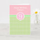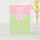 Gingham Verde e Rosa 9º Cartão de Aniversário