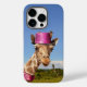 Para um pouco de diversão, aqui está uma girafa num chapéu cor-de-rosa cintilante e colar de rico. Há espaço para você adicionar seu próprio texto personalizado, se quiser. Vá em frente e divirta-se com isso. Esta imagem foi criada manualmente e não é gerada por IA.