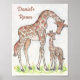 Girafa e seu bezerro - impressão de arte de uma aquarela original de Annie Mason Designs Personalizam o nome da criança