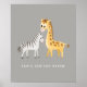 Poster de uma girafa de bebê e zebra para um quarto de criança ou para jardim de infância ou sala de aula primária. A cor de fundo é personalizável.
