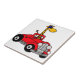 O girafa engraçado maravilhoso que veste um boné de beisebol azul está conduzindo um convertible vermelho retro. Grande ideia do presente. Pode igualmente adicionar o texto feito sob encomenda ou mudar a cor do fundo ao pedir.
