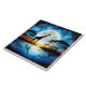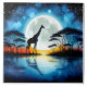 Uma girafa graciosa fica perto de um lago tranquilo, banhado no brilho suave de uma lua de cheio. Cercado por árvores silenciadas, o céu estrelado cria um pano de fundo mesmerizante, capturando uma noite serena na natureza.