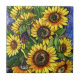 Um desenho colorido de girassóis frescos em um fundo azul.