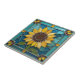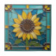 "flores de girassol amarelas", "girassóis", "chalé azul-turquesa, "vibrante alegre", "jardim de verão da janela de mancha", "cabeça de flor decorativa", "azulejo de cerâmica floral ornamental", "contemporâneo moderno tradicional", "azulejos de mosaico falsos", "borda de vidro tingido falsa"