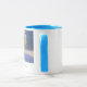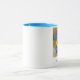 " Girassóis flores na caneca azul do vaso" "em flores "azuis e Dourados" da caneca de café do vaso"
