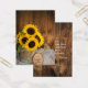 Pratique alguma bondade de casamento quando você arrumar um cartão de doação no lugar dos seus convidados na sua recepção de casamento. O casual, porém clássico, Sunflower e Garden Watering Can Wedding Charity Favor Card afirma que, em vez de um tradicional favor partidário, foi feita uma doação em seu nome para caridade. Personalize-o adicionando o nome da sua caridade favorita e os nomes pessoais da noiva e do noivo. Este cartão de favor nupcial do estilo rústico rústico costume do país apresenta uma fotografia floral melhorada digitalmente de um lençol prateado que pode ser repleto de flores de girassol amarelas, véu branco-brasil, fatia natural de madeira com a palavra LOVE queimado sobre ela e um lenço vintage aparado de linho com uma burapa e madeira castanha e intacta.