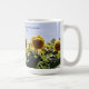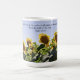 Foto original que consiste numa fileira de girassóis florescentes contra o céu de Verão. A Escritura de bíblia do Salm 103:22 está na frente da taça - uma bela Escritura de culto para começar o dia! Estas são canecas de 15 onças, do tamanho perfeito para o café ou chá da sua casa - ou até chocolate quente! Ele faria um presente de excelente e você poderia colocar pacotes de café, bolsas de chá ou dentro de chocolate quente - ou uma pequena planta - para torná-lo especial para o seu amado. Você pode adicionar texto se quiser!