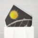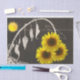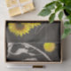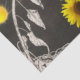Papel de tecido dotado com imagem de girassóis e sol contra fundo preto e branco,