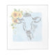 Uma bela design com fundo azul-suave, girassóis na esquina e uma vaca no centro.