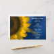 Personalize o bonito Sunflower Amarelo no Menu de Casamento Azul com os detalhes da refeição que você servirá no seu verão ou casamento outono, almoço de chá de panela ou recepção de casamento quando você adicionar a salada ou primeiro curso, entrada ou segundo curso e sobremesa ou terceiro curso. Este elegante cardápio de casamento florescente contém uma fotografia floral de um girassol amarelo com fundo azul.