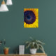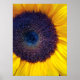 Os girassóis podem ser um lembrete para desfrutar do verão ou de longos raios de ouro dos primeiros dias de outono. Esta poster apresenta uma macro fechada de um girassol vívido com seu centro azul.