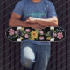 Girassol e flores silvestres no skate preto
