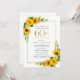 Bonito convite de aniversário floral amarelo de girassol 60º. Peônias amarelas e margaridas brancas se misturam com os girassóis. Um quadro retangular de ouro lhe dá uma vibração elegante. A 60ª Celebração de Aniversário e o nome do celebrante estão escritos em ouro. Muito fácil de personalizar. Essa parte de trás é branca com um buquê de girassol. Isto é perfeito para uma celebração de aniversário de verão.