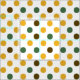 Tecido de linho rústico, com um teste padrão do amarelo, o verde e o marrom de bolinhas. Grande material do artesanato que combina cores dos girassóis.