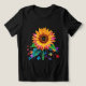 Esta imagem cativante apresenta um girassol ilustrado lindamente no florescimento do cheio. As pétalas do girassol são uma mistura impressionante de amarelo vivo, laranja e pistas de rosa, criando uma paleta de cor viva e quente. Ao redor do girassol estão pedaços de quebra-cabeça flutuantes em várias cores vibrantes, simbolizando a criatividade, a conexão e a intrincada beleza da vida. As folhas detalhadas e os elementos de fundo macio, como estrelas cintilantes ou flocos de neve, somam ao sentimento caprichoso e artístico da imagem. Esta design é perfeita para uso em projetos criativos, materiais educacionais ou como arte decorativa.