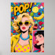 A retro-inspired Pop Art portrait of a fashionable individual, blending 1960s style with modern graphic design. The composition is energetic and eye-catching, ideal for prints, stickers, and apparel.