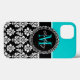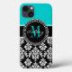Cor damasco Negra e Branca com Aqua Inicial Monograma. Personalize com seu nome e monograma. Galeria Damask © Outras cores e estilos disponíveis em nosso compro em www.zazzle.com/DamaskGallery*