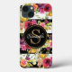 Girly Burgundy Floral Patterno Stripe Nome Monogra