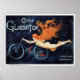 Gladiador de Ciclos - George Massias - 1905 Esta é uma reprodução de qualidade da bicicleta Gladiadora Francesa de 1895 e de George Massias, "Gladiador de Ciclos". Ela retrata uma bela mulher segurando as guiões de um Ciclo de Gladiador e aparentemente voando pela noite estrelada ao lado de sua bicicleta, que é representada com asas no lugar das pétalas de bicicleta. Esta mulher espantosa é mostrada au naturel, seu cabelo vermelho feroz fluindo. Isso me lembra a lenda de Lady Godiva, mas em vez de andar de cavalo pelas ruas, a mulher aparece voando pelas estrelas com a bicicleta.