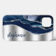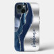 Este design apresenta um gode de cor azul-cúbica revestido com folha fina prateada à esquerda e uma imagem de folha falsa prateada à direita na forma de uma onda coberta por uma cintilação falsa prateada. Personalize-o com seu nome ou monograma em uma fonte azul de pincel na moda marinho.
