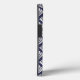 Este design apresenta um padrão de ventilador marinho azul e prateado do deco da arte à esquerda, e uma imagem de folha de alumínio prateada à direita na forma de uma onda limitada com brilho falso prateado. Personalize-o com seu nome ou monograma em uma fonte azul de pincel na moda marinho.