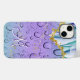 Glam Monograma M Elegante Dourado Roxo e Aqua Fantasy Rain Gota Casos em que Mate iPhone 14 Plus Case.