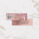 Este cartão de exibição de logotipo para negócios de brincos pequenos e glamourosos é a maneira perfeita de estilizar sua embalagem e adicionar seu próprio charme e personalidade. Ele apresenta gotas de glitter grosso rosa dourado brilhante impressas em falso em cima de um fundo de folha de rosa dourado. A tipografia é uma escrita cursiva elegante com uma fonte serifada moderna para combinar. É chique, bonito, único e luxuoso; a maneira perfeita de anunciar seu negócio e estilizar seu material de marketing e propaganda para seus clientes. (furos de brinco são apenas marcadores impressos, perfuração deve ser concluída pelo cliente)