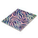 Um padrão de impressão em animais de zebra, safari, impressão em animais selvagens, design moderna, desenhada à mão, azul metálico falso e gradiente holográfico, recheado com linhas onduladas e traços de zebra de animais com gradiente azul e roxo.