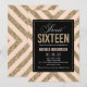 Celebre este marco enviando este convite de festa de sweet sixteen divertido e elegante. Este convite apresenta muito brilho e glitter com apenas um toque de rosa cremoso. Há um belo padrão de glitter no verso que dá a este convite um toque extra especial. A textura do glitter é falsa e é impressa plana. Escolha um papel texturizado ou forma recortada para torná-lo um convite de festa ainda mais luxuoso.