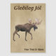 Uma pintura digital com "visual retrô" de um alce (Alces alces) sobreposta a uma imagem de fundo de papel ou pergaminho antigo. Texto islandês que diz "Gleðileg Jól" também aparece. Adicione seu próprio texto adicional.
