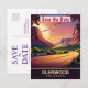 Glenwood Canyon, salve a data convite de casamento, cartão postal de viagem. Pôr do sol lindo sobre as montanhas e a estrada.