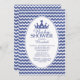Convite para chá de fraldas de príncipe moderno com uma coroa azul de brilho FAUX em um fundo azul de falso brilho para um chá de fraldas de meninos. Perfeito para primavera ou chá de fraldas de verão. Sacudir nosso chá de fraldas príncipe da coroa convidar para ver uma correspondência de volta para um toque especial extra.