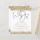 Um valor para o alternativo do ORÇAMENTO em tamanho menor de 4,5 x 5,6" de semirbrilho de 110 lbs, que é de espessura semelhante a um cartão postal (no entanto, não é adequado para uso como cartão postal). POR FAVOR, OBSERVE QUE HÁ UM convite por folha. Glitter de Faux Dourado de Orçamento Fazemos Um Convite de casamento Simples De Código QR. Adicione seu código QR ao seu site de casamento no verso para que seus convidados possam RSVP e ver todos os detalhes on-line sem a necessidade de gabinetes separados. Script de conjunto informal Nós levamos o palco central no topo e uma borda suave em ouro está em ambos os lados. O resto do texto que você pode personalizar facilmente. As cores de texto e de fundo podem ser alteradas se você quiser se adequar melhor ao seu tema de casamento através da opção personalizar mais.